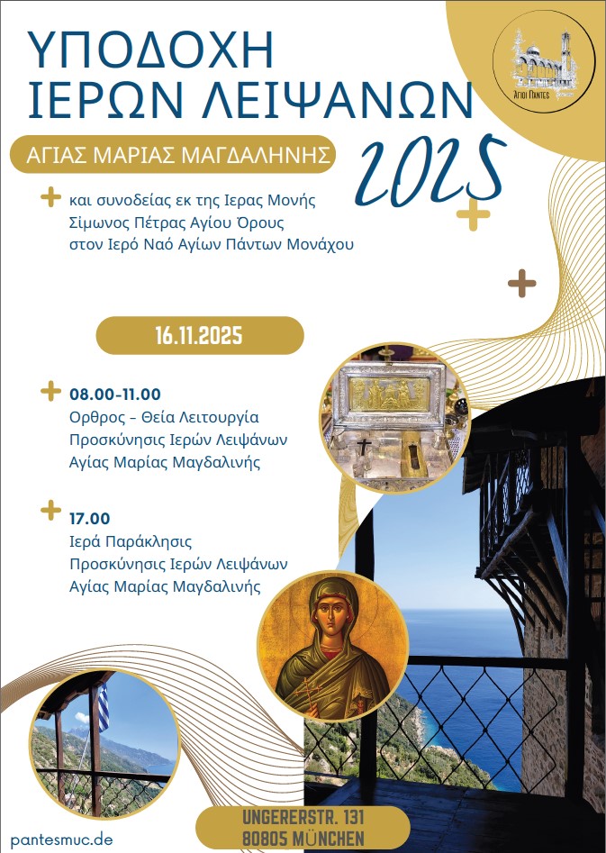 Πλήθος κόσμου εόρτασε το πρωτόγνωρο αυτό, για την παροικία μας στο Μόναχο, γεγονός. Με την παρουσία τους μας τίμησαν ο Καρδινάλιος Μονάχου κ. Friedrich Wetter, ο εκπρόσωπος της Ευαγγελικής Εκκλησίας, η βαυαρή Υπουργός Παιδείας και Θρησκευμάτων, ο Γενικός Πρόξενος της Ελλάδος στο Μόναχο και πολλοί εκπρόσωποι της Βαυαρικής Πολιτείας, του Δήμου Μονάχου και άλλων φορέων και οργανισμών.»